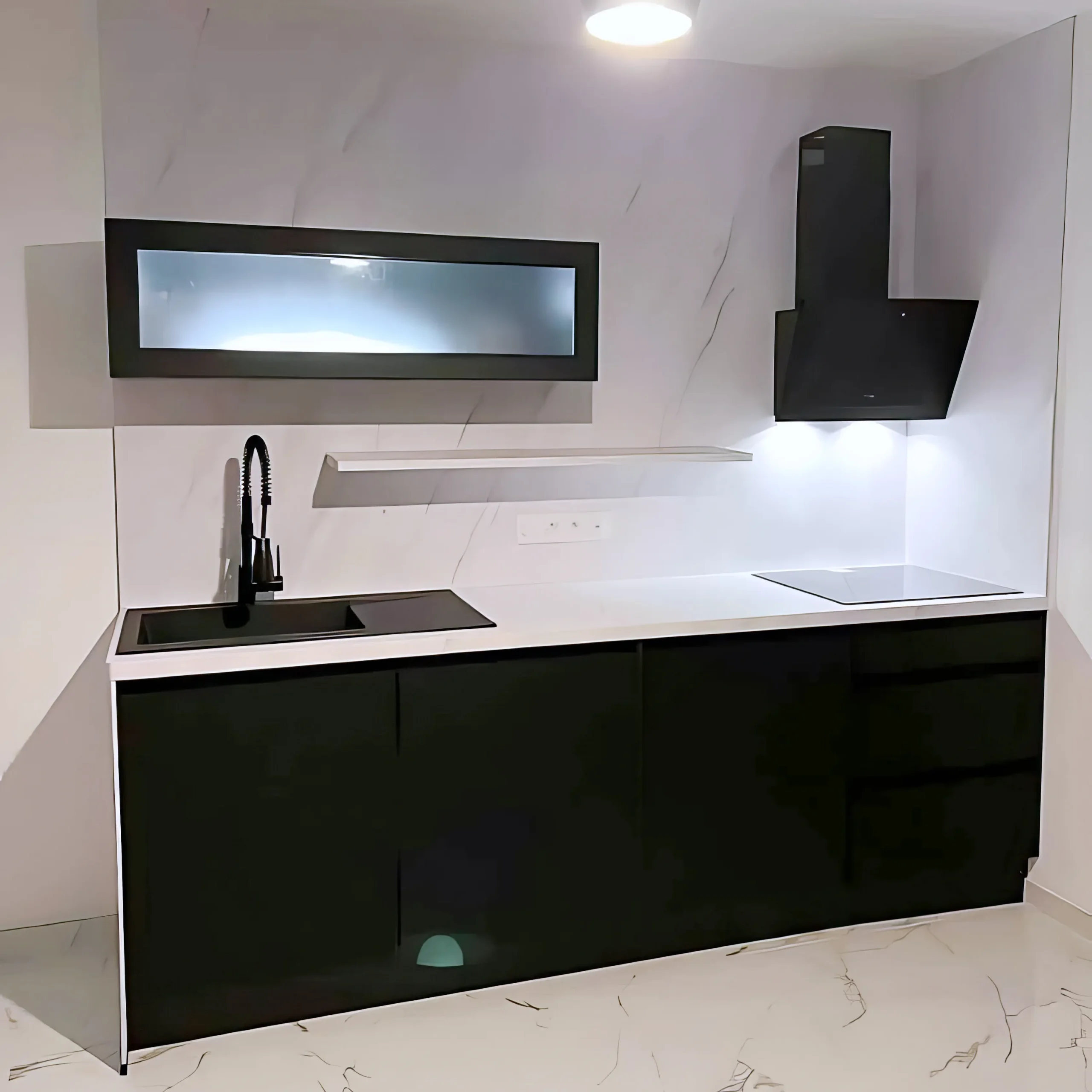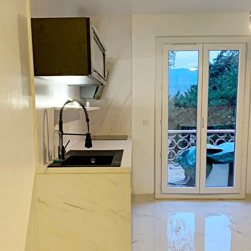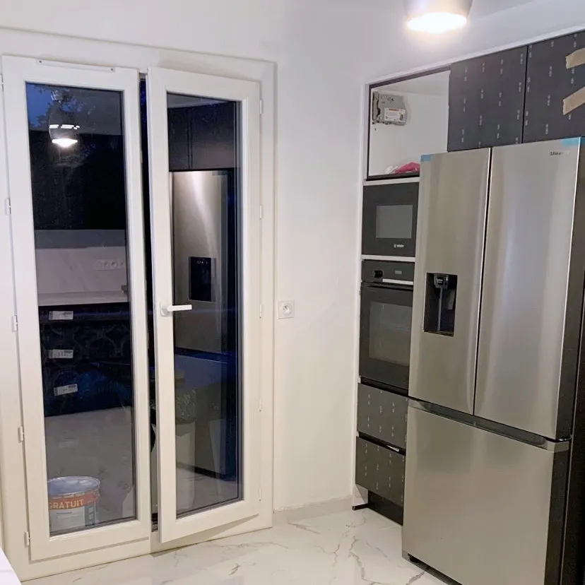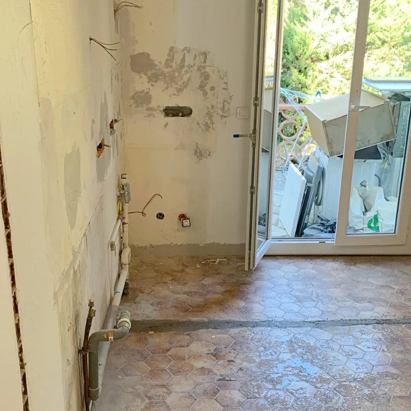 Cette cuisine située à Cagnes-sur-Mer présentait des revêtements anciens et des installations techniques qui ne correspondaient plus aux normes actuelles ni aux exigences de confort. L’espace nécessitait une modernisation afin de créer un environnement plus fonctionnel et esthétique.